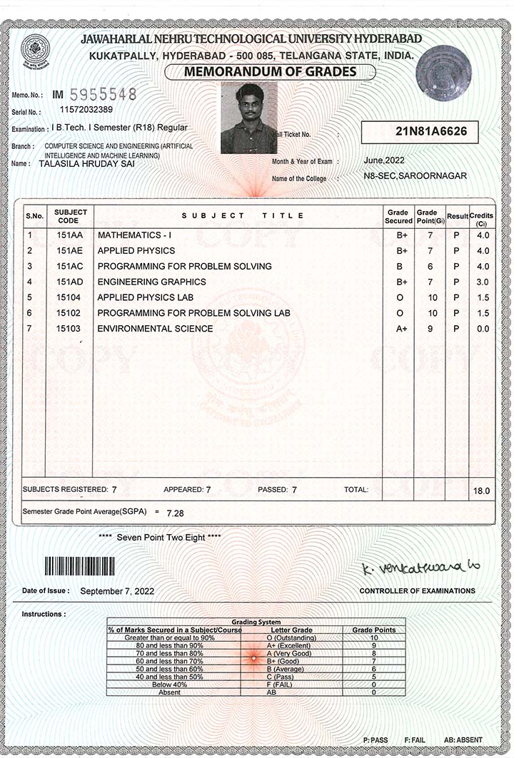 | B.Tech I Year I Semester (R18) Regular Examinations Results 07-SEP-2022 |
